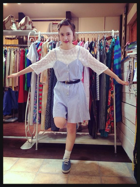 爽やかな水色と白のストライプコンビネゾン♪ベルトをするとさらにGOOD(^_^)b