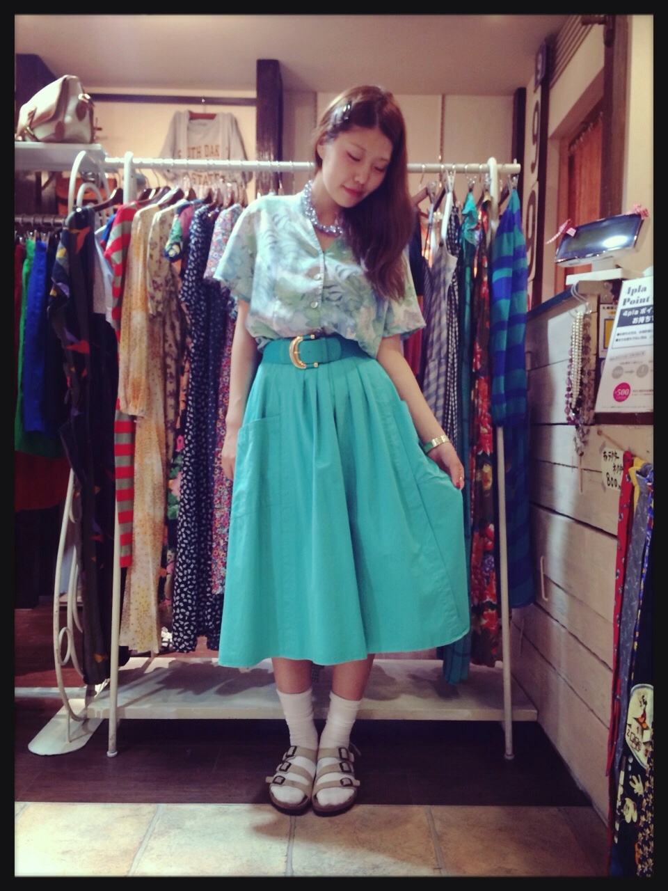 おはな柄シャツをスカートにあわせ、お姉さんコーデに♪