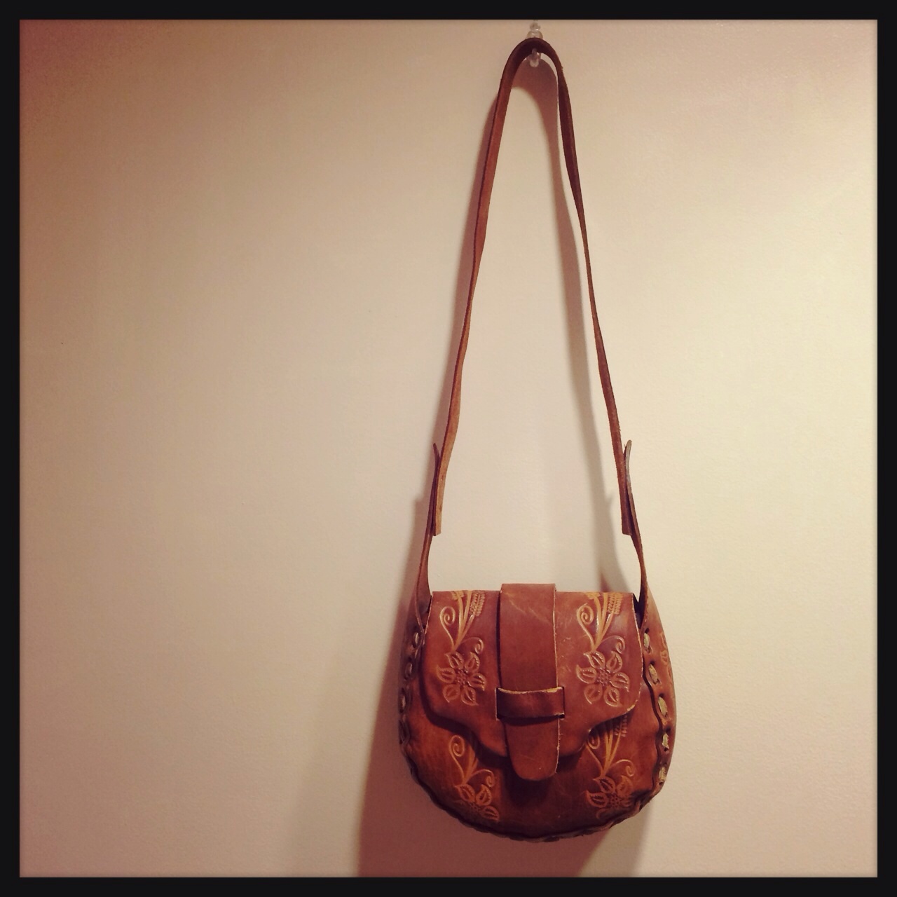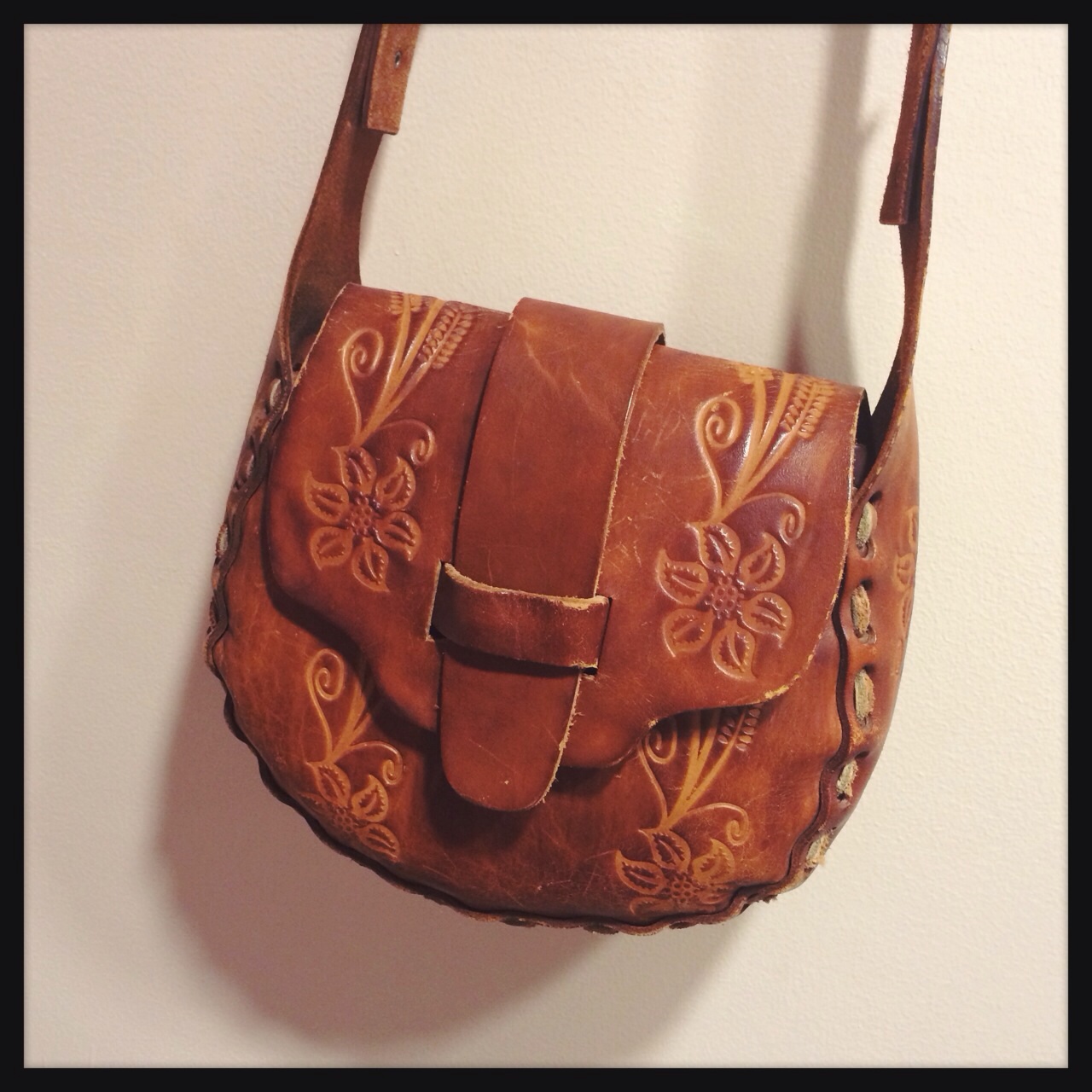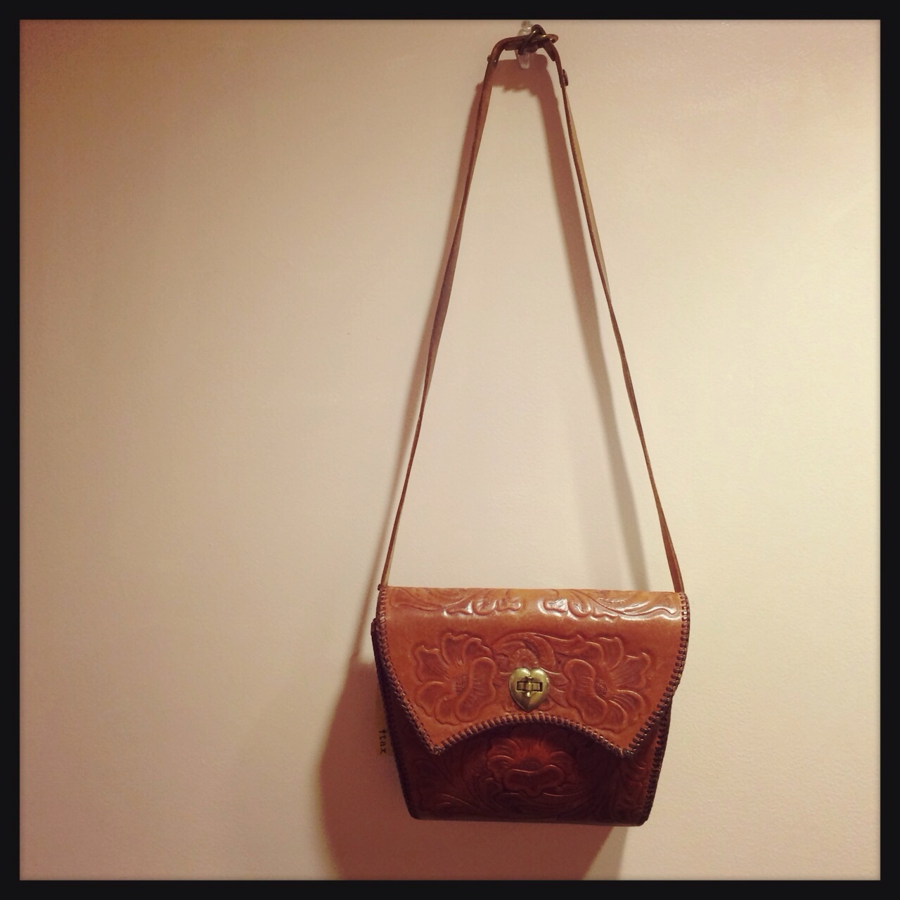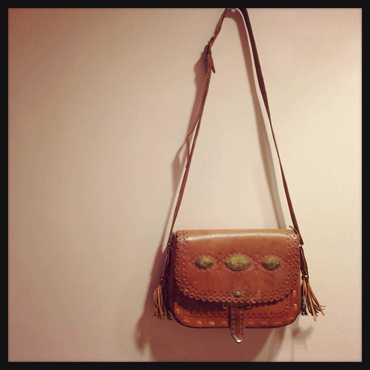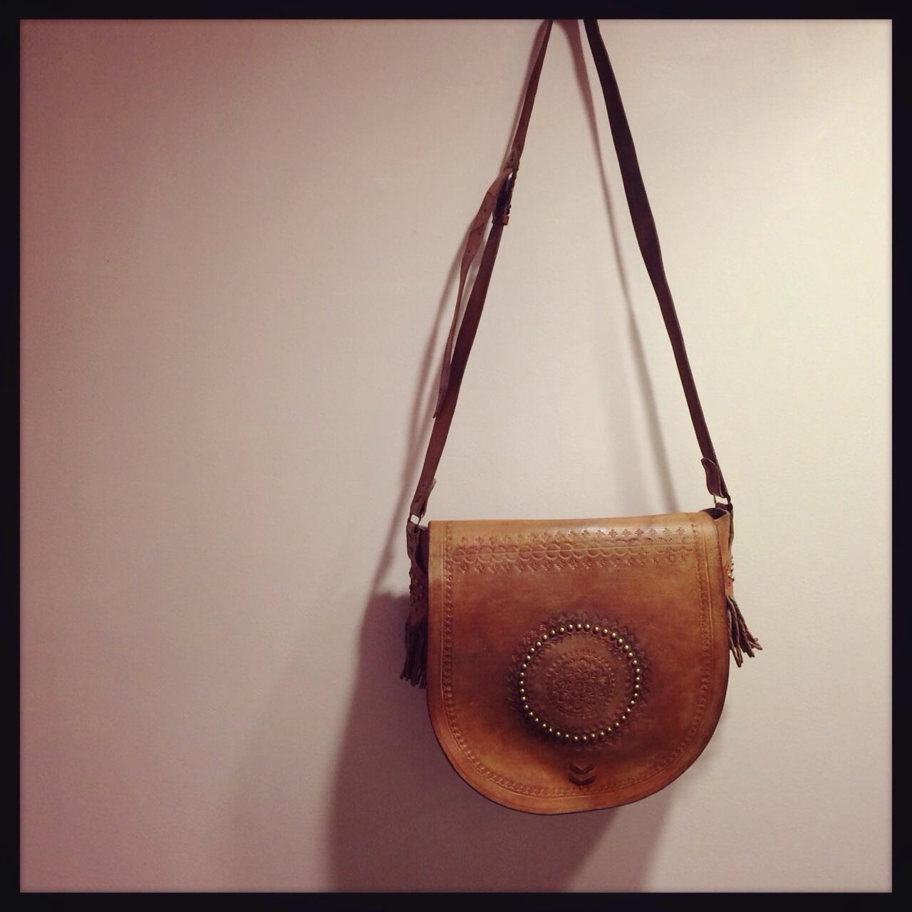 サイドのフリンジとレース風な型押しが可愛い♪紐の長さ調節できるのでショルダーとしても(^_^)/☆