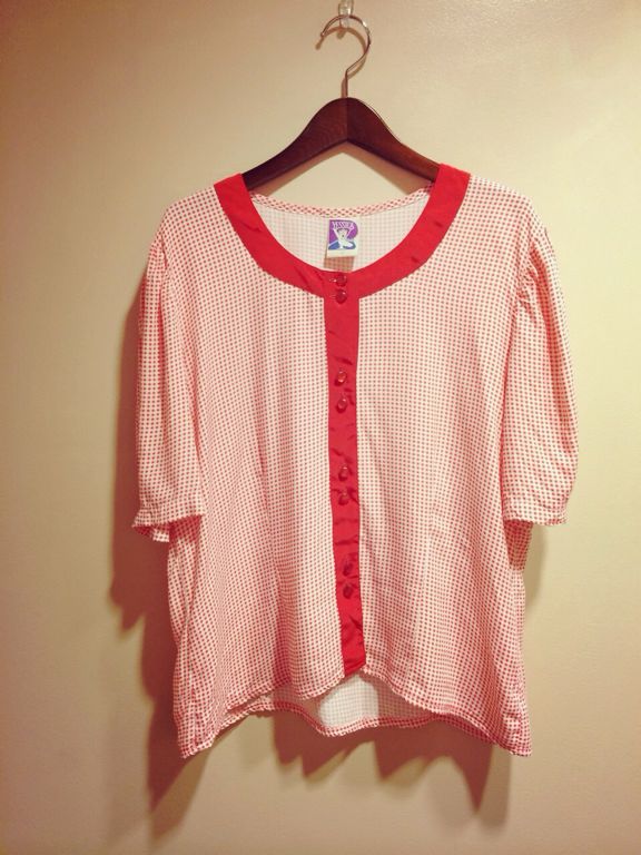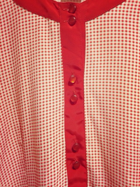 赤色のギンカムチェックブラウス