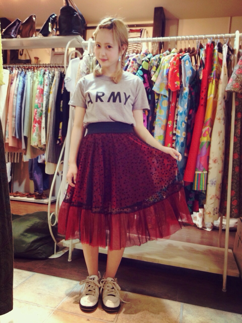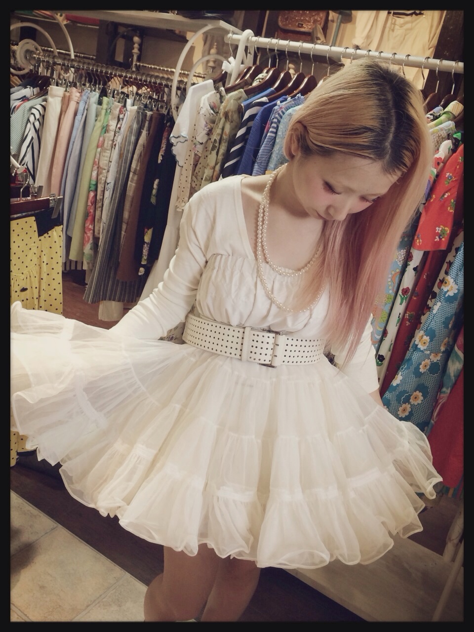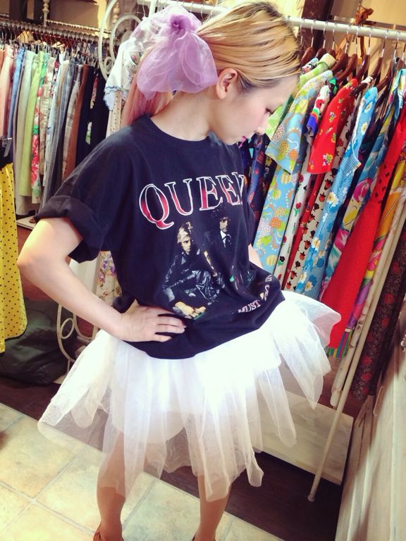 硬めチュールなこちらのパニエは、ロックTシャツと合わせて甘辛コーデに!(^.^)☆