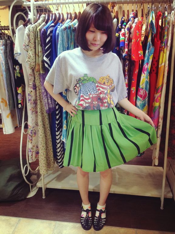 スイカを思い出してしまう色合いのスカート!