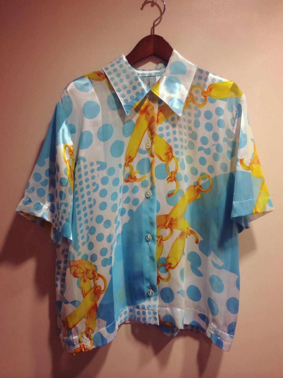 ドットがかわいい水色のシャツです!