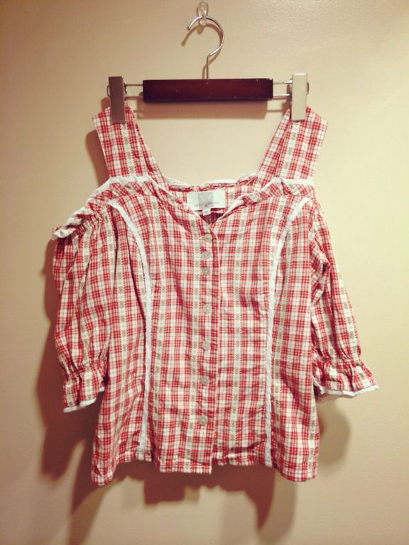 赤いチェックのブラウスです!