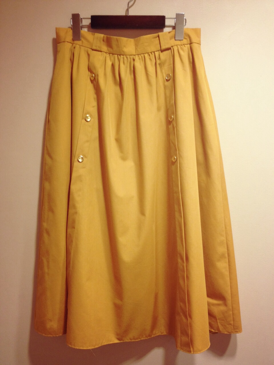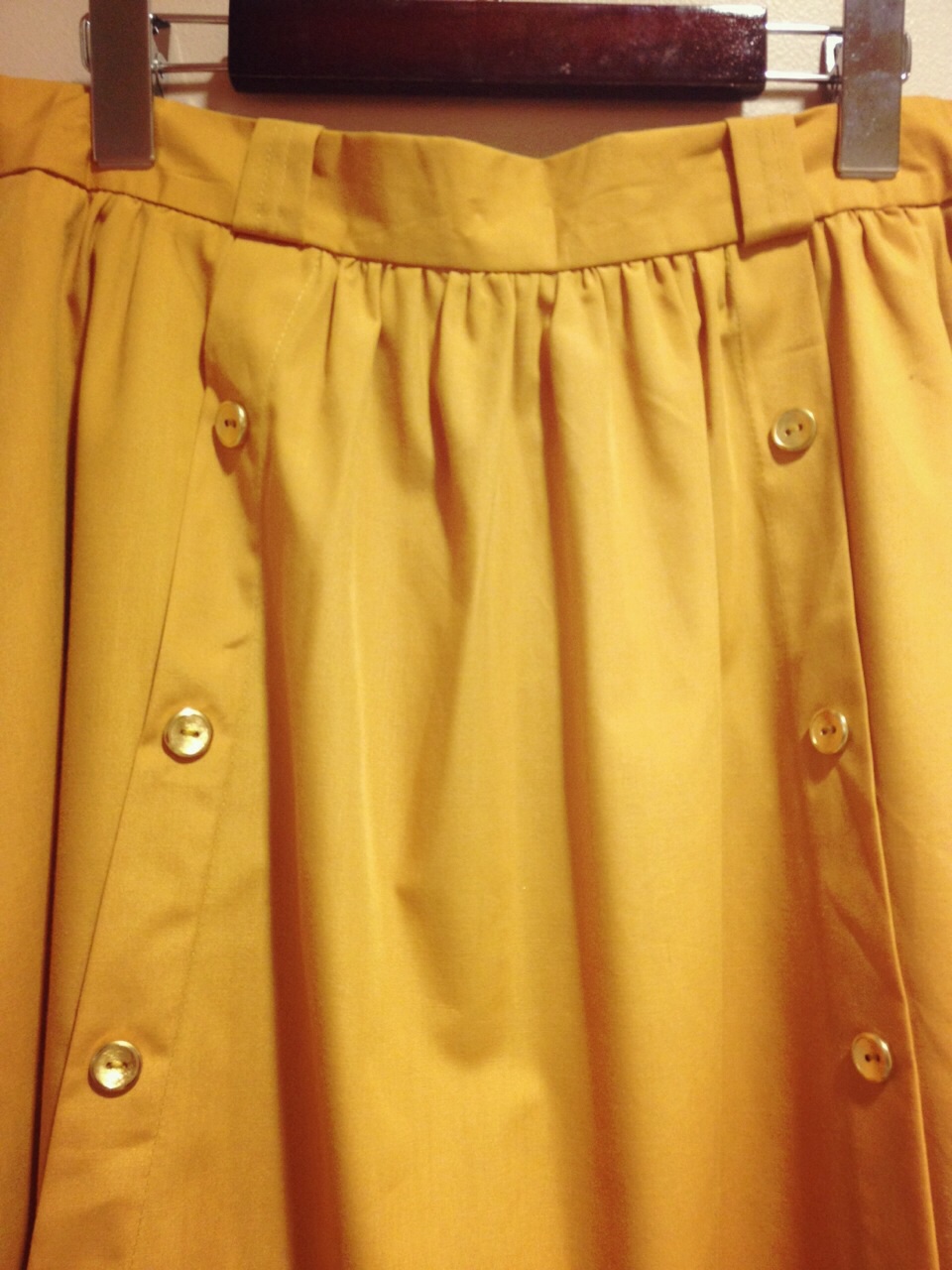 からし色で2列のボタンがキュート。