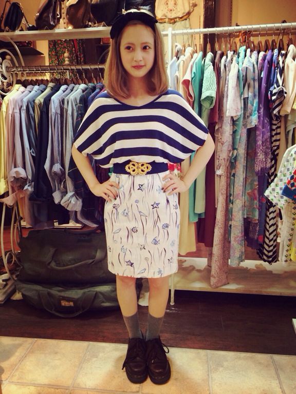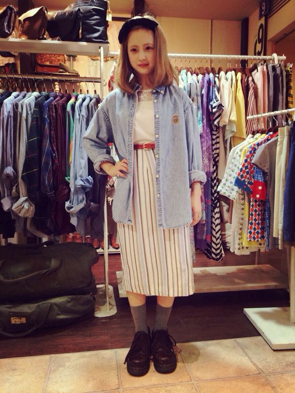 こちらも新入荷したラルフローレンシャツを羽織りに使ったコーディネート♩ストライプのタイトスカートと大人っぽく☆