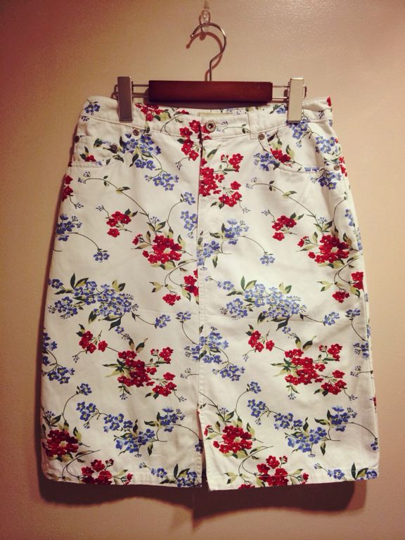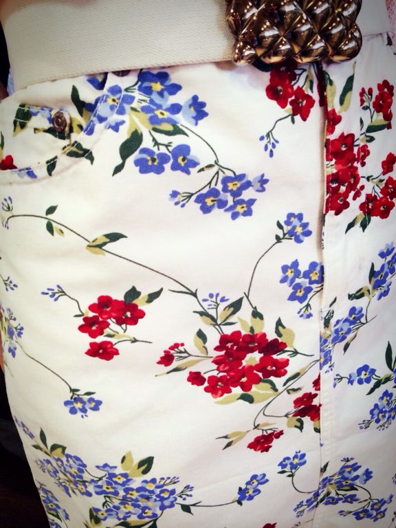白をベースに印象的な青と赤のお花柄です!パステルなサマーニットと相性抜群ですo(^_-)O